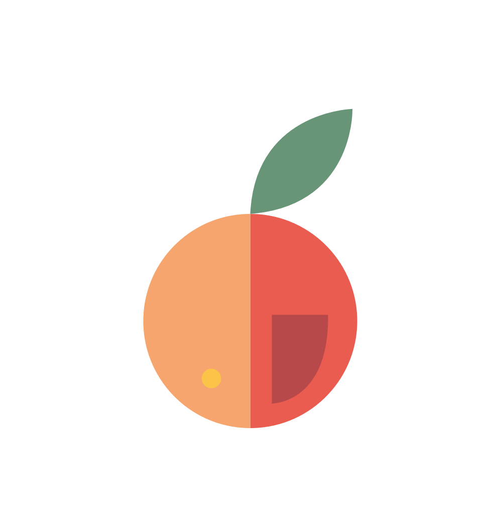 Réalisation de fruits dans un style sobre et épuré, en cherchant les bonnes couleurs pour que l’on sache de quel fruit il s’agit.